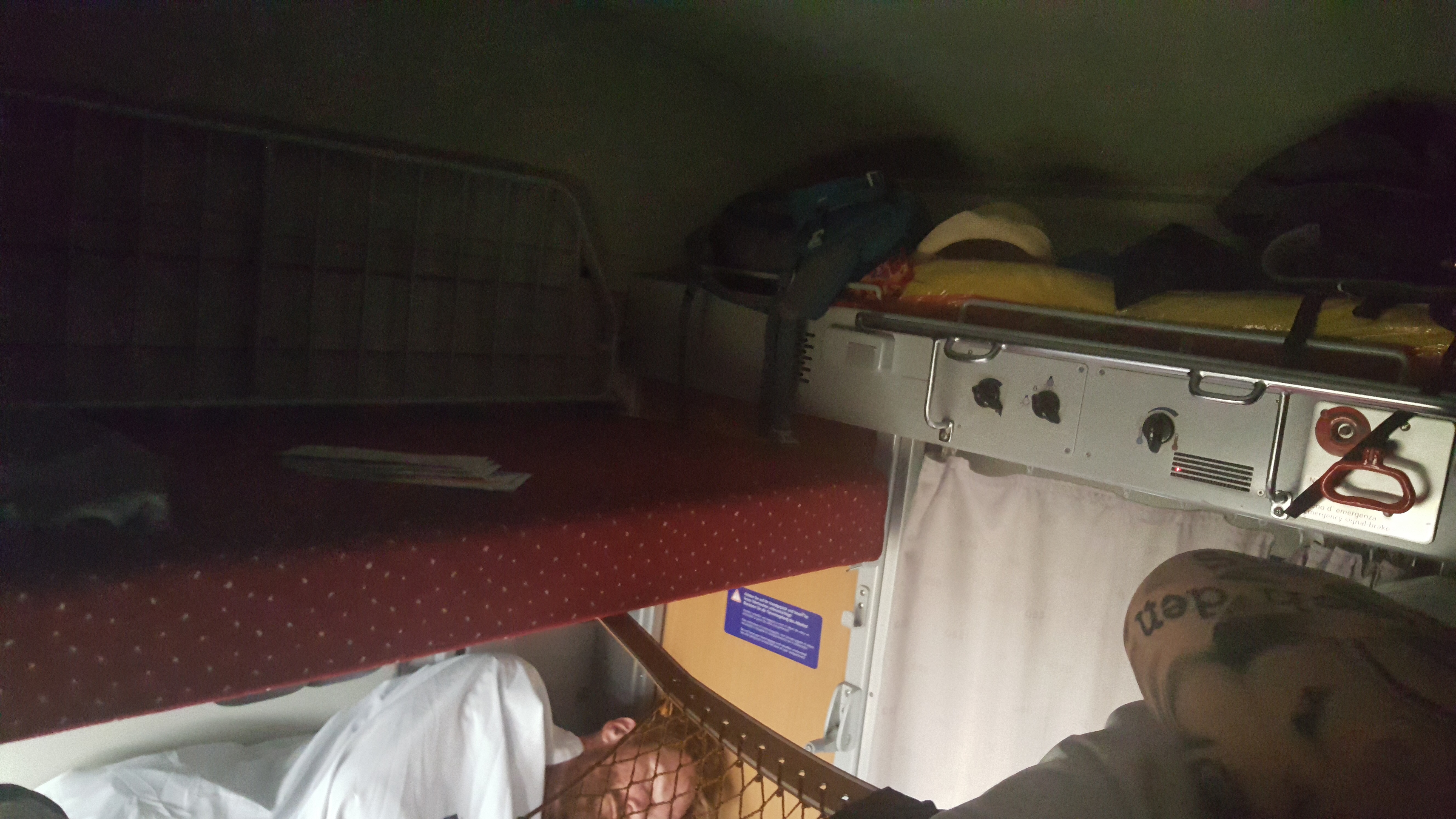 Abenteuer Nachtzug. Es fing damit an, dass ich in das Abteil mit meiner reservierten Liege nicht hineinkam, weil es von innen mit einer Kette verschlossen war. Die Atmosphäre war gespenstisch, ich fühlte mich wie ein Eindringling und kam mir in jeder meiner Bewegungen unfassbar laut vor. Mein Versuch mich im nicht verschlossenen Nachbarabteil niederzulassen, wurde von der Schaffnerin rigoros unterbunden. Der Zug sei voll, alle Liegen besetzt, ich müsse die mir zugewiesene Liege nehmen. „Die machen jetzt schon auf!“, war die trockene Entgegnung auf meinen kleinlauten Einwand aber doch nicht in mein Abteil hineinzukommen. Den Worten folgten Taten: Sie hämmerte heftig gegen die Abteiltür und wies die verschlafenen Insassen zurecht, dass ihnen das Abteil nicht gehören würde und was der Scheiß denn solle. Meine Liege ganz unten war belegt, was die Schaffnerin ebenfalls missbilligend zur Kenntnis nahm und sich gerade anschickte, die zwei dort schlafenden Kinder unsanft zu wecken. Mir war die ganze Situation äußerst unangenehm und ich lenkte schnell ein, auch ganz oben zu schlafen, das mache mir nichts aus. Insgesamt war die Familie wenig erbaut über meine Ankunft. Ich zog meine Schuhe aus und krabbelte in die dritte Etage unter die Decke. Hier fand ich ein Laken, ein kleines Kissen und eine Fleecedecke vor. Erstes akutes Problem: Kaum Ablageflächen – wohin also mit meiner Brille und den Smartphones (mein privates und das Firmenhandy)? Die Liegefläche war nicht komplett mit der Wand verbunden, so dass hier schmale Gegenstände leicht zwischen Liege und Wand herunterrutschen können. Und überhaupt die Liegefläche – ein Phänomen für sich. Ich bin 1,70m groß, stieß auf dem Rücken liegend jedoch mit Kopf und Füßen an den Enden des Abteils an. Zudem war die Fläche vielleicht 60cm breit und zum Gang hin nicht abgegrenzt. Ich hatte die ganze Zeit Angst im Schlaf beim Umdrehen oder in der nächsten Kurve zwei Meter nach unten zu fallen. Dafür hatte ich aber auf der Wandseite ein sowohl überflüssiges, als auch unangenehm drückendes Gitter an der Wand, das ich zunächst in der Dunkelheit nicht zuordnen konnte. Und so verbrachte ich meine Nacht irgendwo zwischen Dösen und aufschrecken in der Kurve oder vom stetig zunehmenden Schmerz in meinem Rücken. Zu allem Überfluss klapperte irgendein Blech unablässig durch die Vibration des Zuges.