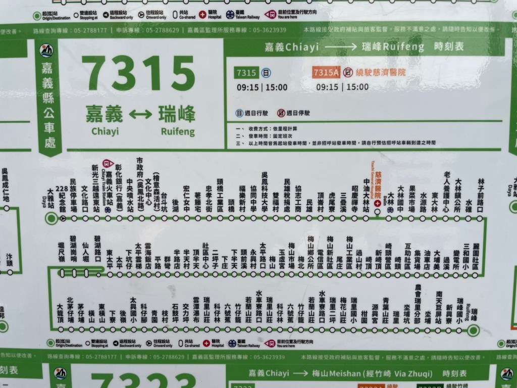 Die hilfsbereite Dame an der Information am Bahnhof Chiayi, erklärte mir wo ich die Bushaltestelle fand und, dass ich meine uralte Easycard (2008 geholt für die öffentlichen Verkehrsmittel in Taipei) dafür nutzen konnte. Ich musste nur wieder Geld aufladen (geht bei FamilyMart oder 7/11). Und tatsächlich – das alte Teil funktionierte noch!