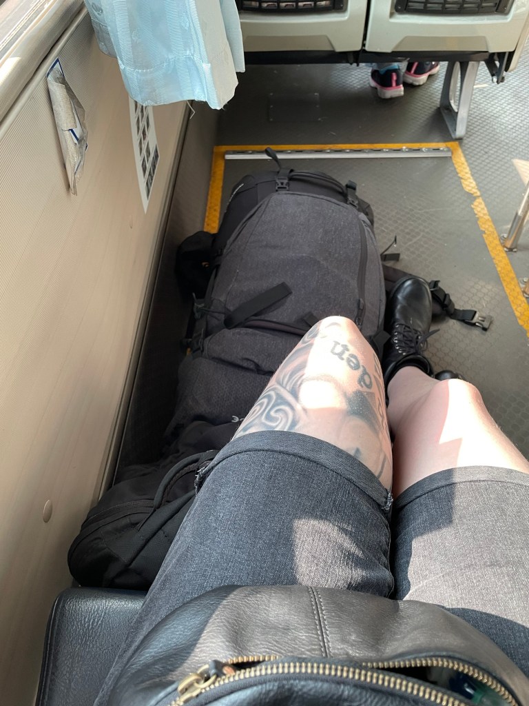 Der kleine Linienbus kam verspätet, aber er kam. Sogar behindertengerecht. Den Platz nutzte ich für mein Gepäck.