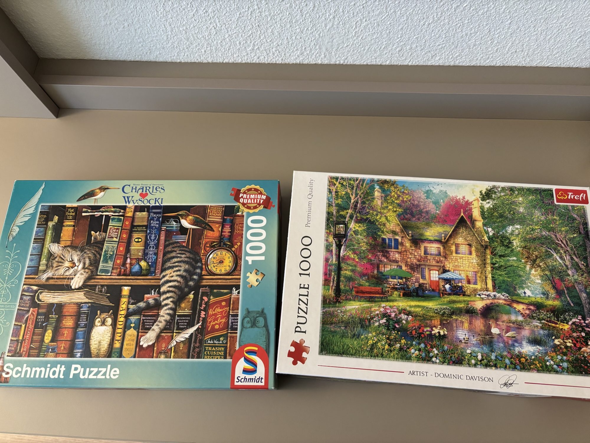 Die Feiertagssituation ist wirklich unglücklich. Ich fühle mich akut unterbeschäftigt. Das geht so weit, dass ich angefangen habe vom Puzzleverleih hier Gebrauch zu machen. Drei Puzzle mit je 1000 Teilen habe ich schon fertig gestellt – zwei davon jedoch zugegebenermaßen mit Jonas‘ Hilfe, der mich das Wochenende nach Weihnachten besucht hat. An den Feiertagen und am Wochenende bleibt mir meistens nur das freie Sportprogramm zu einem bestimmten Zeitslot. Also 20 Minuten Ergometer fahren und die freien Übungen, die ich von meiner Hamburger Physiotherapeutin bekommen habe. Ich bin wirklich so froh, dass die mich ausgestattet hat, sonst könnte ich mich auf Ergometer und freihändiges Aufstehen beschränken, wenn ich nur auf das zurückgriffe, was ich hier gelernt habe. Meinen Rückenkurs, in dem ich in der ersten Stunde freihändiges Aufstehen gelernt habe, hatte ich nämlich nie wieder. Ich habe aber von einem Mitinsassen (wir werden hier Rehablilitanten genannt, ich finde aber Insassen treffender) erfahren, dass der Kurs durchaus weiter ging und er dort auch weiter regelmäßig war. Wurde ich da rausgeschmissen, weil ich rumgemault hab, dass mir das Niveau zu niedrig ist? Die Therapeutin meinte, ich müsste eigentlich in einen weiter fortgeschrittenen Kurs, wenn ich mit meiner Physio schon Planks gemacht hätte. Nur habe ich jetzt halt gar keinen Kurs mehr – weder die Krabbelgruppe, noch den fortgeschrittenen Kurs. Aber morgen habe ich wieder einen Arzttermin, in dem ich sowas erfragen kann.