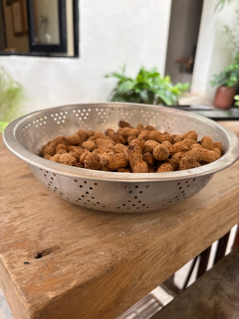Zum Abschied bekam ich von meiner Gastgeberin noch gedämpfte Erdnüsse. Hab ich auch noch nicht gegessen. Sie waren ganz frisch und noch dampfend warm. Schmecken anders als geröstete, aber ich kann schlecht beschreiben inwiefern. Und sie sind recht weich.