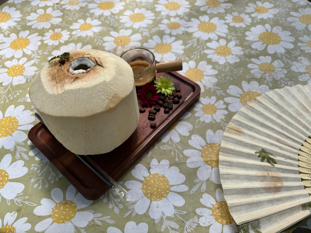 Bei einer Pause testete ich Kokosmilchkaffee. Schmeckt gewöhnungsbedürftig, aber mein Gott, sah das fancy aus!