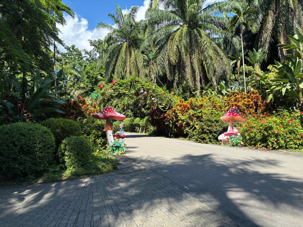 Den Nachmittag verbrachte ich im Garten für tropische Pflanzen. 40 Yuan kostete mich der Eintritt und unmittelbar hinter dem Eingang hielt mich ein Angestellter auf, der mich auf Englisch darauf hinwies, dass ich für weitere 40 Yuan die Rundtour im offenen Kleinbus/Golfcart buchen könne. Als ich ablehnte, belehrte er mich, es handele sich um 18 km Weg im Park und die könne ich unmöglich laufen. Ich hatte mir den Park vorher auf der Karte angeschaut und so groß erschien er mir nicht. Ich runzelte also die Stirn und lehnte bestimmt ab. Diese Entscheidung sollte ich nicht bereuen, denn diese offenen Carts fuhren im Laufe meines Besuchs im Park regelmäßig an mir vorbei. Sie waren ausnahmslos bis auf den letzten Platz voll und Platz ist in diesen Dingern nicht besonders großzügig kalkuliert, 90% der Insassen fuchtelten mit ihren Handys herum und in der Menge saß eine angestellte Person des Parks mit einem Mikrofon, in das sie Informationen zur vorbeiziehenden Vegetation brüllte. Hätte ich das gebucht, wäre das also der vollkommene Overkill für mich geworden. Stattdessen schlenderte ich in Ruhe durch den Park und bog immer wieder einmal von den großen Wegen, die auch von den Carts genutzt wurden, auf kleinere Pfade rechts und links ab. Hier war meist kein Mensch mehr zu sehen, die Natur dafür umso dichter und wunderschön. In der Plantage für tropische Früchte sah ich zum ersten Mal einen Avocadobaum live vor mir. Ich wusste gar nicht, dass dessen Blätter so klein sind.