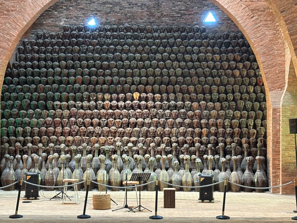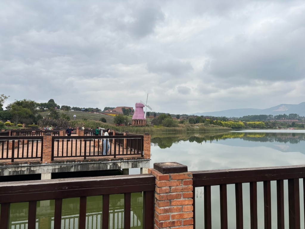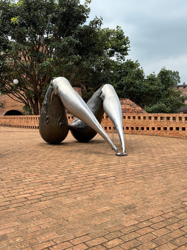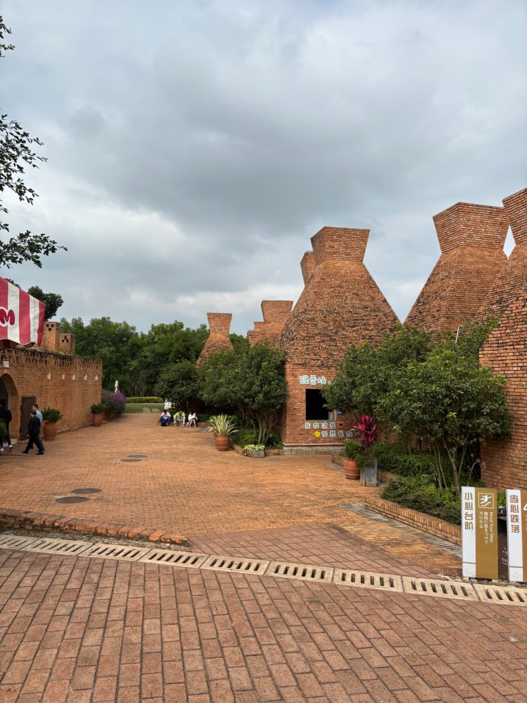 Meine letzte Woche in Kunming war geprägt von Abschieden. Leider schaffte ich es nicht mehr Liu, meinen Kletterpartner, zu treffen, sondern hinterließ nur seine Schuhe in der Kletterhalle. Ich hatte meine letzten zwei Taiji Stunden und habe fest vor, in Hamburg damit weiterzumachen. Am Freitag, meinem letzten Tag Unterricht, unternahm ich einen Ausflug mit meiner Lehrerin und deren anderer Schülerin, Linda, die zufällig auch meine Zimmernachbarin war. Linda und ich verstanden uns ganz gut und entschieden daher unsere Unterrichte zusammenzulegen, um mit dem Zug nach Mile (弥勒) zu fahren. Dort gibt es einen großen, schön angelegten Park mit außergewöhnlich geformten Häusern aus Backstein (Hamburg lässt grüßen) und viel Kunst.
