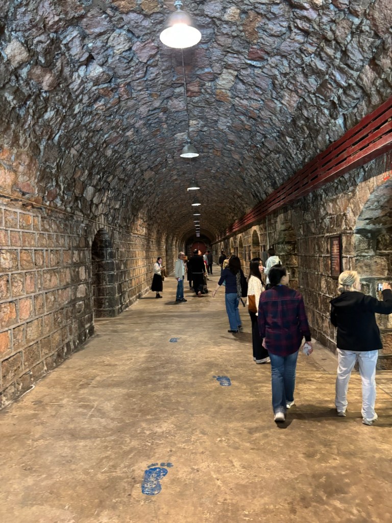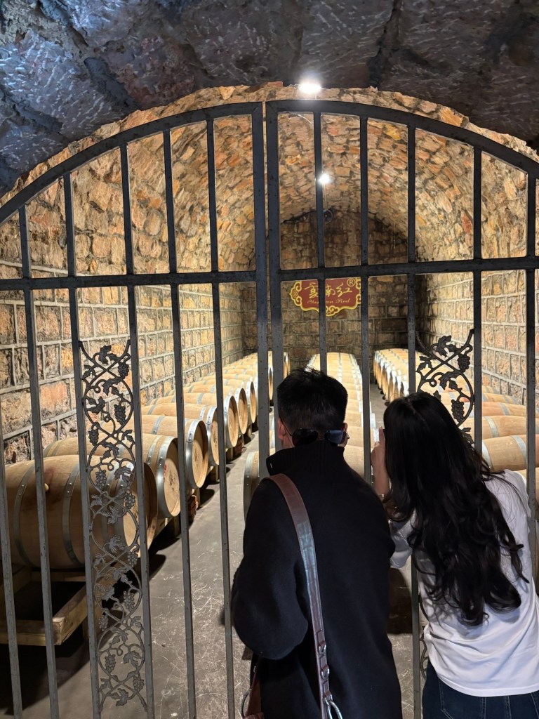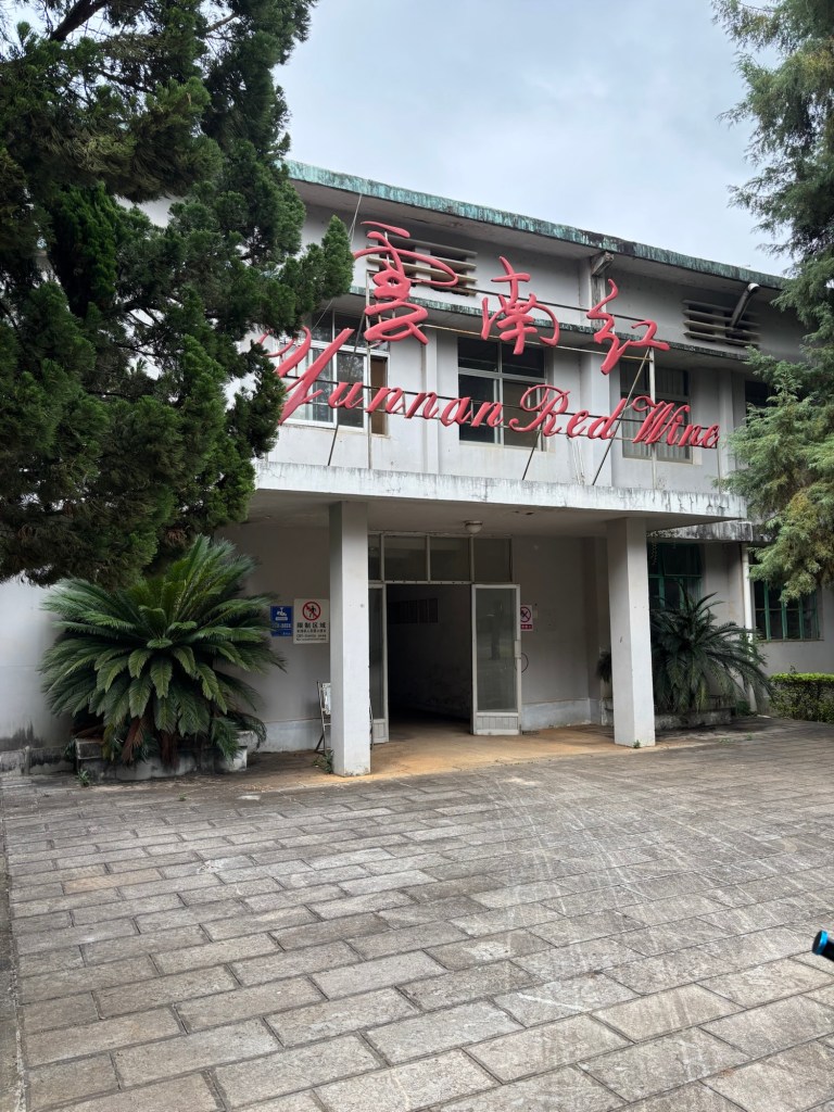 Am Nachmittag besuchten wir noch ein Weingut, Yunnan Red Wine. Hier hat irgendein kundiger Mensch französische Reben importiert und baut die jetzt in Yunnan an. Wir wurden eilig an der sehr industrialisiert wirkenden Produktion vorbeigeführt und durch den angenehm kühlen, nach Wein und Korken duftenden Keller geleitet. Danach gab es noch einen kleinen Probierschluck Weißwein, der recht süß schmeckte, sagte Linda und anschließend durften wir durch den Souvenirshop das Gelände wieder verlassen.