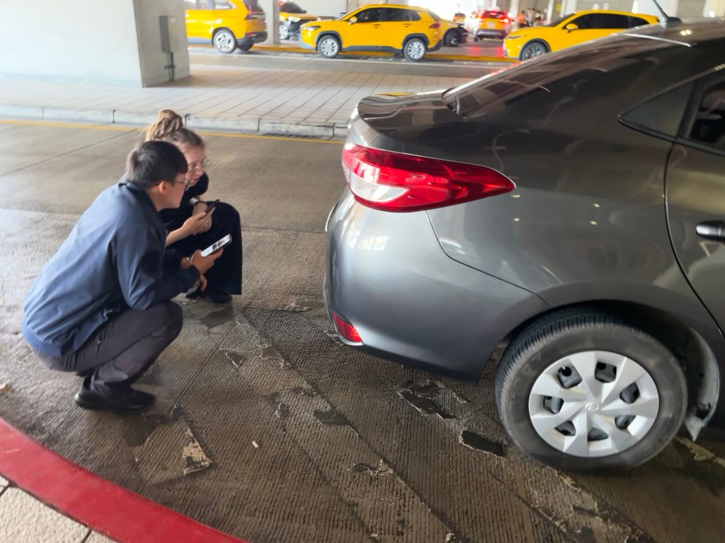 Wie erwähnt, hatte ich das Auto über die App klook im Voraus gebucht und auch schon bezahlt. Vor Ort mussten wir uns dann aber noch für ein Versicherungspaket entscheiden. Wir nahmen das teuerste, weil wir befürchteten, in den Bergen bei dem abenteuerlichen Verkehr mitunter ein paar Schrammen hinzuzufügen. In Taiwan steigt die Versichungssumme mit der Anzahl der Fahrberechtigten. Da wir beide fahren wollten, bzw. zumindest die Option haben wollten, zahlten wir den Grundpreis der Versicherung pro Tag plus einen Aufschlag von 300 TWD für jede weitere fahrende Person. In Summe zahlten wir noch einmal 130 Euro für die Versicherung, also gar nicht mal so günstig die ganze Nummer. Wir wurden außerdem darauf hingewiesen, dass wir sobald wir einen neuen Schaden feststellen, die Polizei rufen müssten, um den Schaden zu dokumentieren. Machten wir das nicht, zahlt auch die Versicherung nicht. Interessant wurde dann auch das Benzinpaket, das sie uns verkaufen wollten. Superpraktische Pauschale bei der wir gar nicht mehr tanken müssen bei Ankunft. Es würde einfach ein Betrag pro km abgerechnet. Als wir dies ablehnten, wurden wir gebeten kurz zu warten, bis unser Auto vollgetankt würde, um die Regel „voller Tank bei Abholung und bei Abgabe“ zu bedienen. Offenbar ging die Vermietung davon aus, wir würden die Pauschale nutzen.
