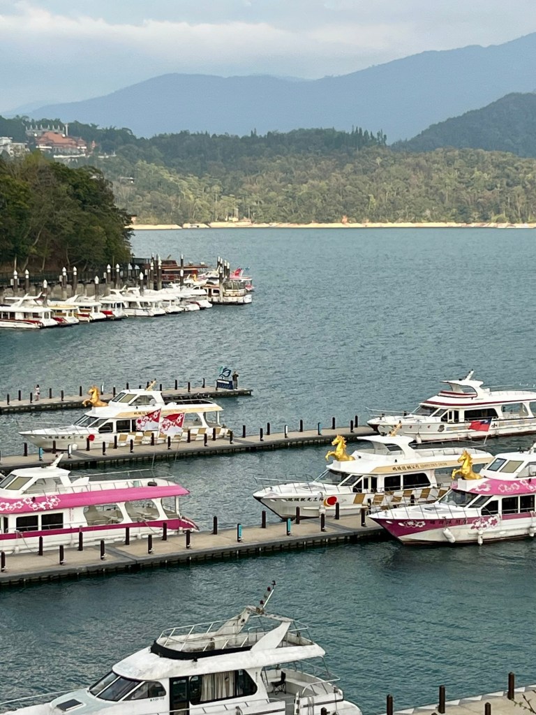 Irgendwann ist immer mal Wochenende und dann deckt sich unser Urlaub mit der Freizeit der anderen Inselbewohner. Und die Tourihotspots sind entsprechend überlaufen. Aber es nützt ja nichts. Wir wollten zum berühmten Sun Moon Lake und brachen am Freitag dorthin auf. Zuerst mit dem Hochgeschwindigkeitszug nach Taichung (台中) – eine Stunde Fahrt von Taipei aus. Ich hatte über Klook ein Mietauto für uns gebucht. Vier Tage für knapp 200 EUR. Abholung direkt am Highspeed Bahnhof in Taichung. Ich hatte Puffer eingeplant, weil ich nicht wusste, wie riesig der Bahnhof in Taichung ist und wie leicht sich der Schalter der Autovermietung finden lassen würde. Es hielt sich letztendlich in Grenzen. Taiwan ist eben doch nicht China. Aber durchfragen war dennoch nötig.