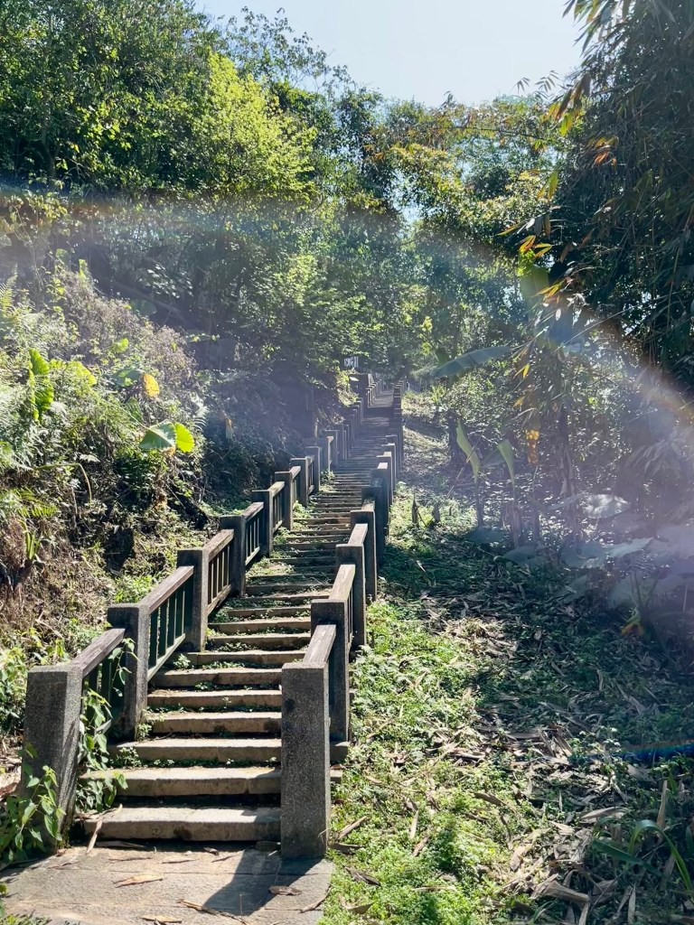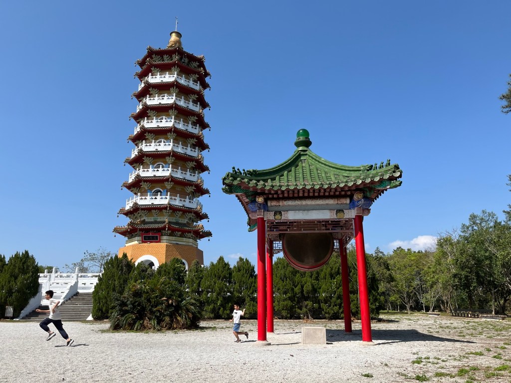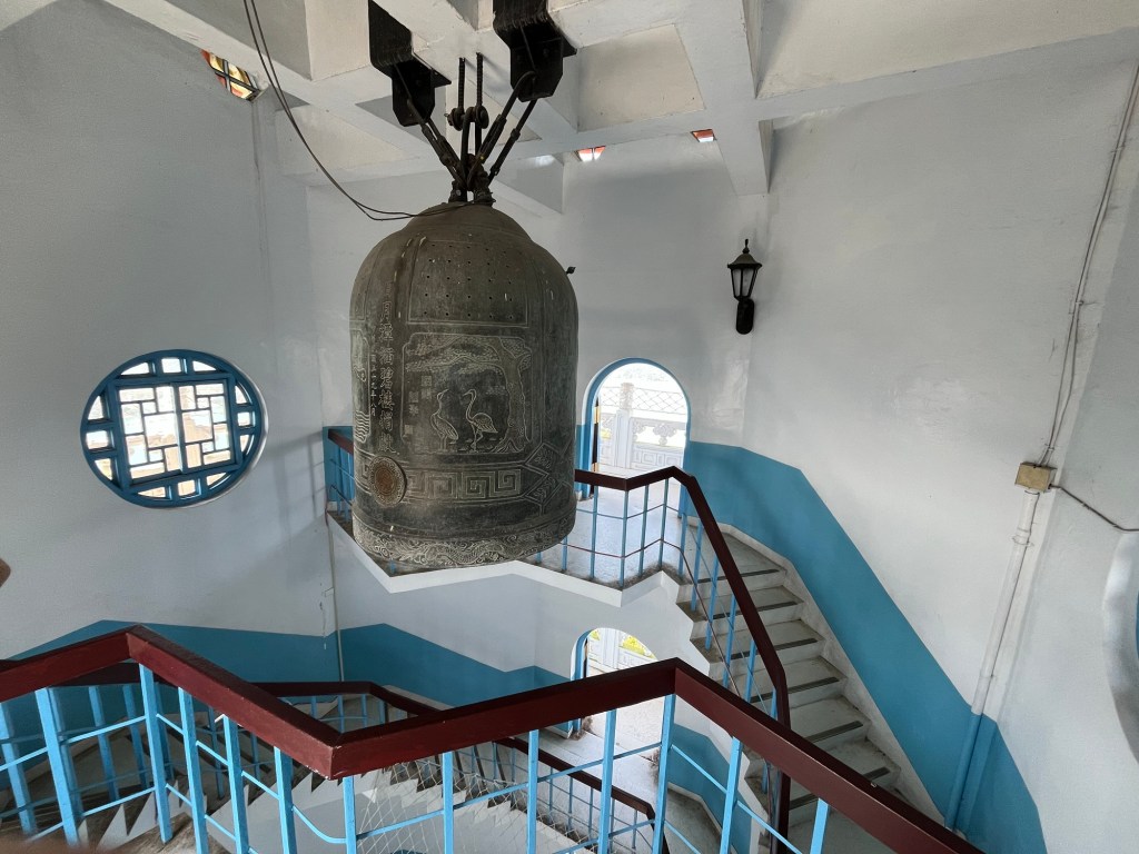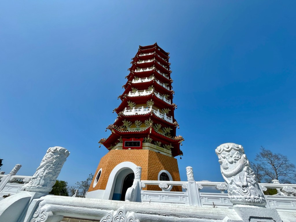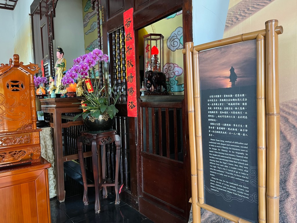 Dahinter begann ein Fußweg durch den Djungel, ca. 800 Meter bergauf zum deutlich größeren Xuan Zang Tempel. Hier werden die Gebeine des buddhistischen Gelehrten Xuan Zang verehrt. Der Mönch hatte in der Tang Dynastie Indien bereist, um die reine buddhistische Lehre zurück nach China zu bringen. Seine Gebeine gelangten in japanische Hände und wurden von Chiang Kai Shek – zumindest in Teilen – „zurückgeholt“, so dass sie jetzt einen Ruheort am Sun Moon Lake in Taiwan gefunden haben. Am Tempel begegneten wir außerdem einer Gruppe Motorradfahrender, die uns noch einmal bestätigten, dass es für Ausländer*innen in Taiwan nicht möglich ist, große Maschinen zu mieten. Wir bräuchten Freunde in Taiwan, die uns helfen, also im Klartext Maschinen für uns kaufen und zur Verfügung stellen. Mit einem aus der Crew ist Michael jetzt aber über Instagram verknüpft.