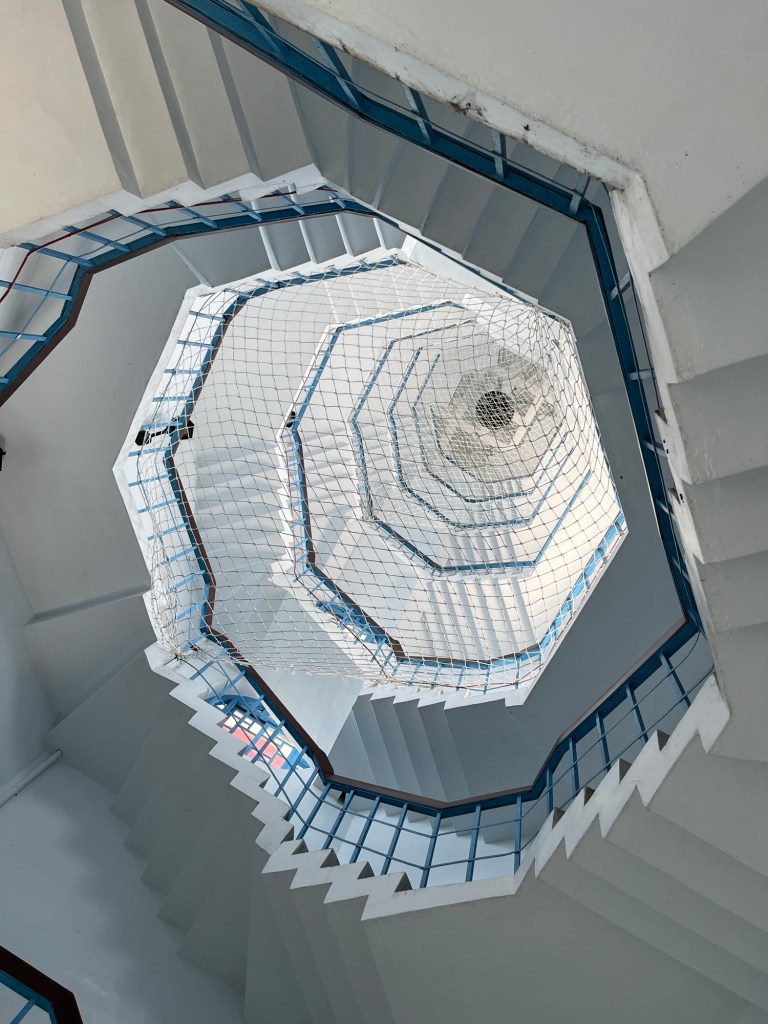 Wir stärkten uns mit veganen Nudeln (gegen Spende) für den Aufstieg zur Ci’en Pagode (慈恩塔). 1100 Meter. Hui. Treppen. Natürlich. Und die Pagode selber konnten wir auch noch erklimmen. Der Blick von oben auf den See hinunter war fantastisch. Nervig waren lediglich die unablässig schwirrenden Drohnen irgendwelcher obercoolen Besucher. Der Ort war abgesehen davon so friedlich. Es gab noch nicht einmal einen Parkplatz. (Die anderen beiden Tempel waren auch motorisiert erreichbar.)