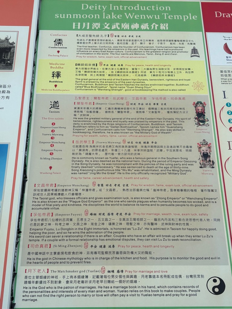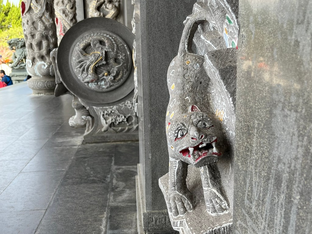 Am nächsten Vormittag fuhren wir nach dem Auschecken noch an dem wirklich sehr beeindruckenden Wenwu Tempel (文武廟) vorbei und ließen uns Zeit ihn in allen Details aufzunehmen. Auch hier trafen wir vor der Anlage wieder Falun Dafa Anhänger an. Ich fand es interessant, dass in dem Tempel sowohl daoistische, als auch buddhistische und konfuzianische Gelehrte verehrt wurden. In China hatte ich stets klar einer Richtung gewidmete Tempel gesehen.