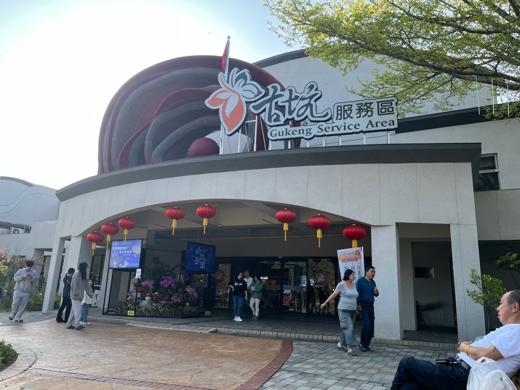 Wir fuhren ein bisschen Autobahn. Die Maut wird hier automatisiert erhoben. In der Windschutzscheibe unseres Autos klebte ein kleiner Sensor, abgerechnet wurde bei Abgabe des Autos. Die Maut lohnte sich schon allein deshalb, weil wir bei einer Pause in den Genuss eines Taiwanesischen Rastplatzes kamen. Es war die Hölle los. Meine Highlights: