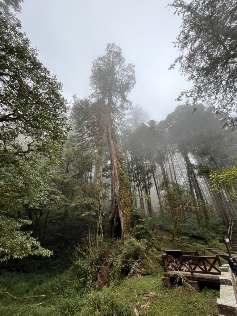 Während wir rasteten zog es sich zu und Wolkenschwaden waberten die Berge rauf und runter (sie wechselten tatsächlich gelegentlich die Richtung). Der Wetterbericht hatte das vorhergesagt – wir hatten genügend zusätzliche Schichten mit. Die für den Emeishan vor zwei Jahren gekaufte sehr klein packbare Daunenjacke erwies mir wieder gute Dienste. Wir wanderten einen großen Kreis an weiteren Baumriesen vorbei und wieder zurück zur Xiangling Area, wo wir erneut einen Shuttlebus nahmen, der uns zurück zum Parkplatz brachte. Gegen 17:00 Uhr waren wir zurück in unserer Unterkunft.
